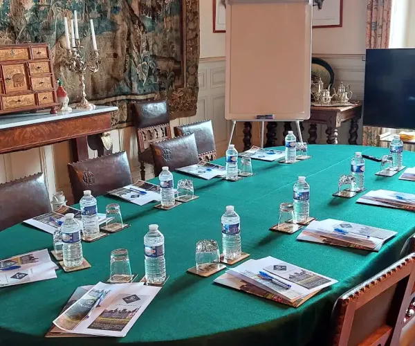 Les pièces de réception du château et le parc sont à votre disposition pour les temps de travail (écran connecté, paper-board disponibles), ainsi que les moments de convivialité et de restauration (café d'accueil, pauses, apéritifs et repas).